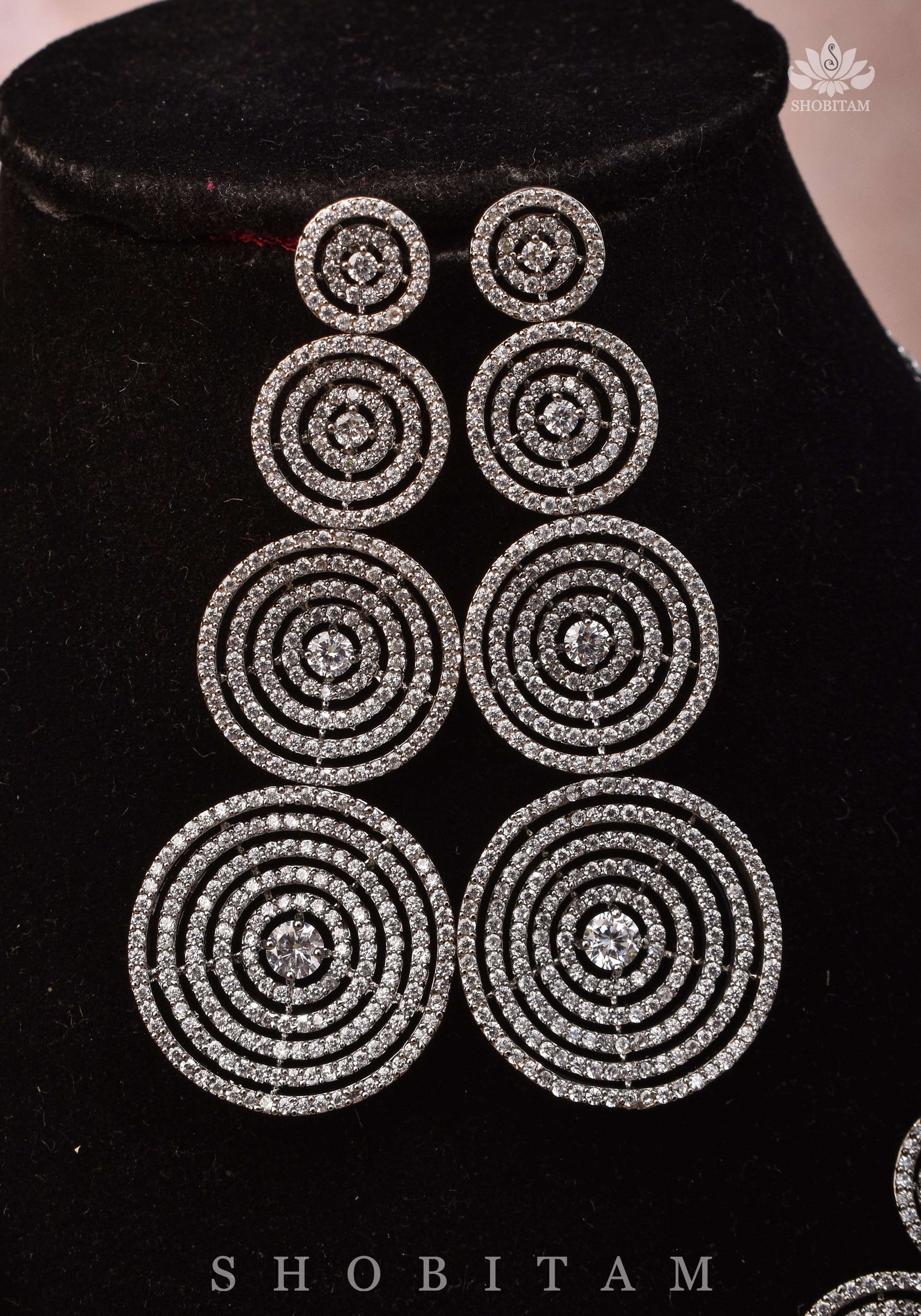 CZ Stone Studded Halo design Necklace Set with 3" Long Earrings | Shobitam Jewelry