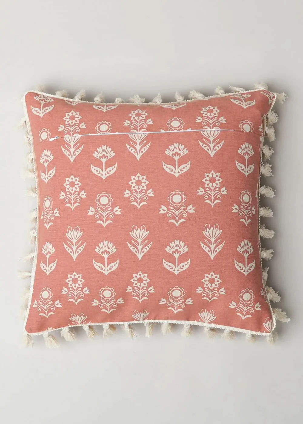100% Pure Cotton Cushion Cover in Earthly Sandstone with Dahlia Print and tassels, Size Options available | Shobitam