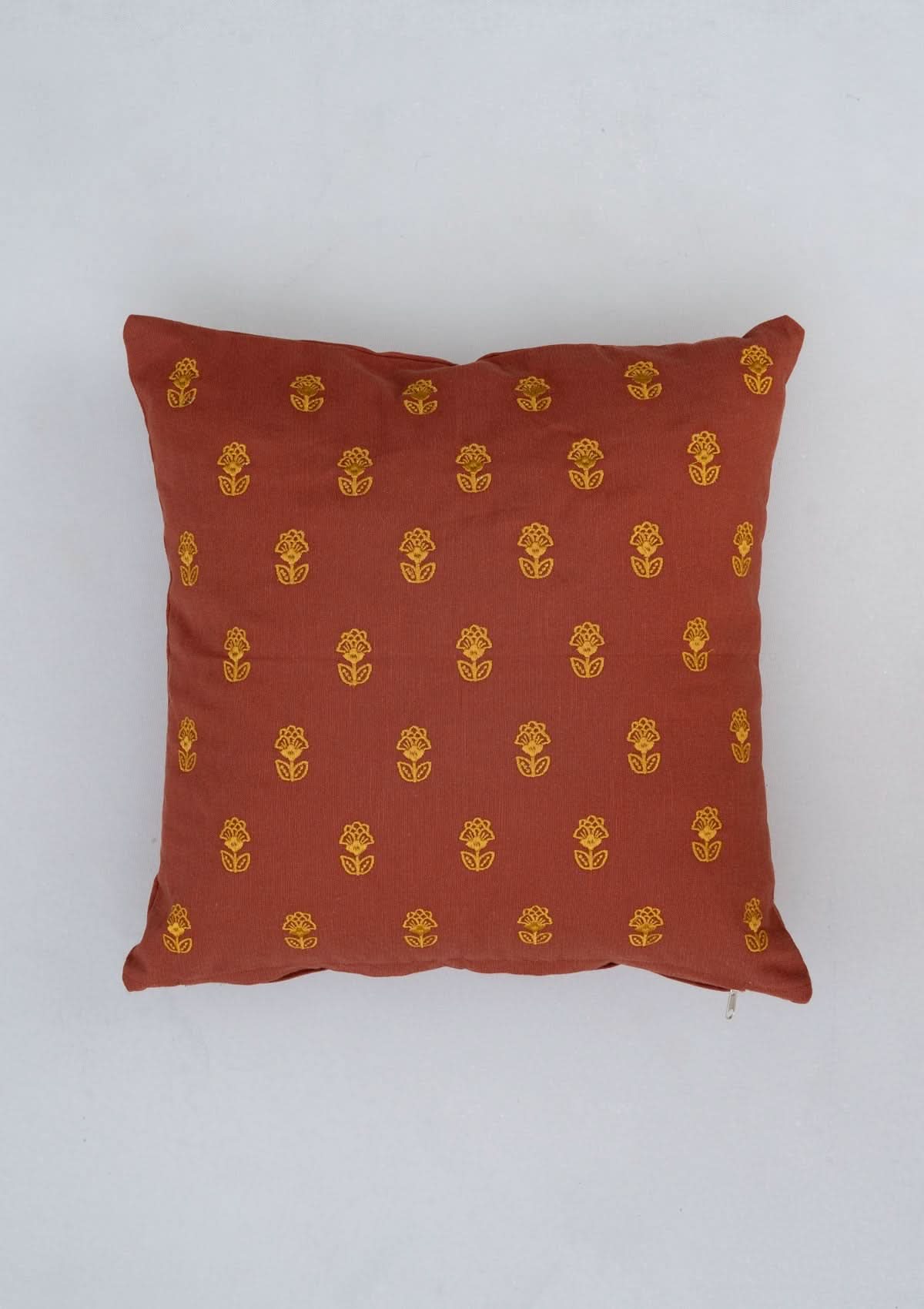 Kesar 100% cotton embroidered decorative cushion cover for sofa - Brick Red | Shobitam