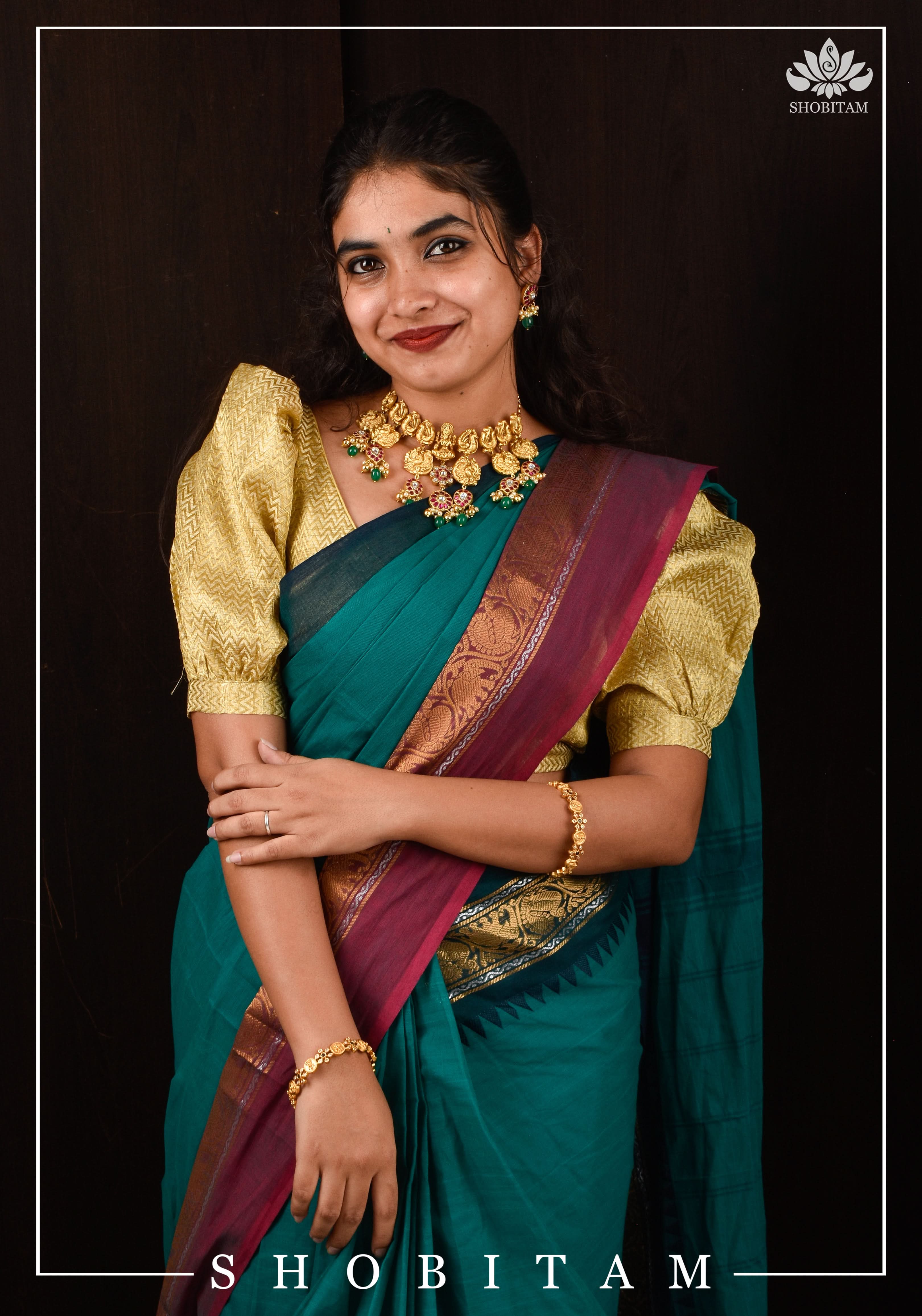 Three Layer Nagas Necklace Set with Kemp Stones | Shobitam Jewelry