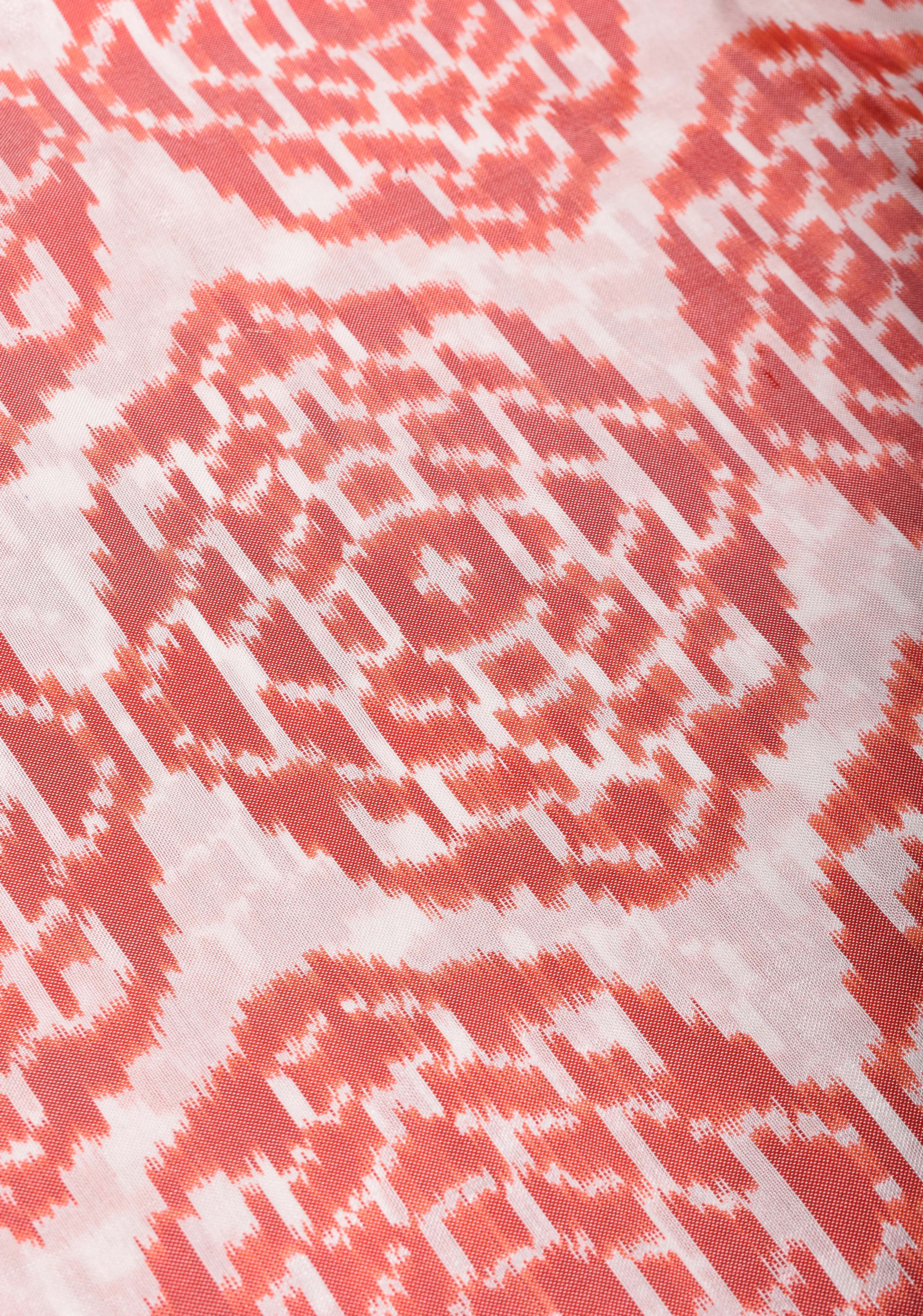 Exquisite White and Peach Ikkat Mandala design Fusion Pure Silk Saree with Gadwal Style Border | SILK MARK CERTIFIED | Shobitam