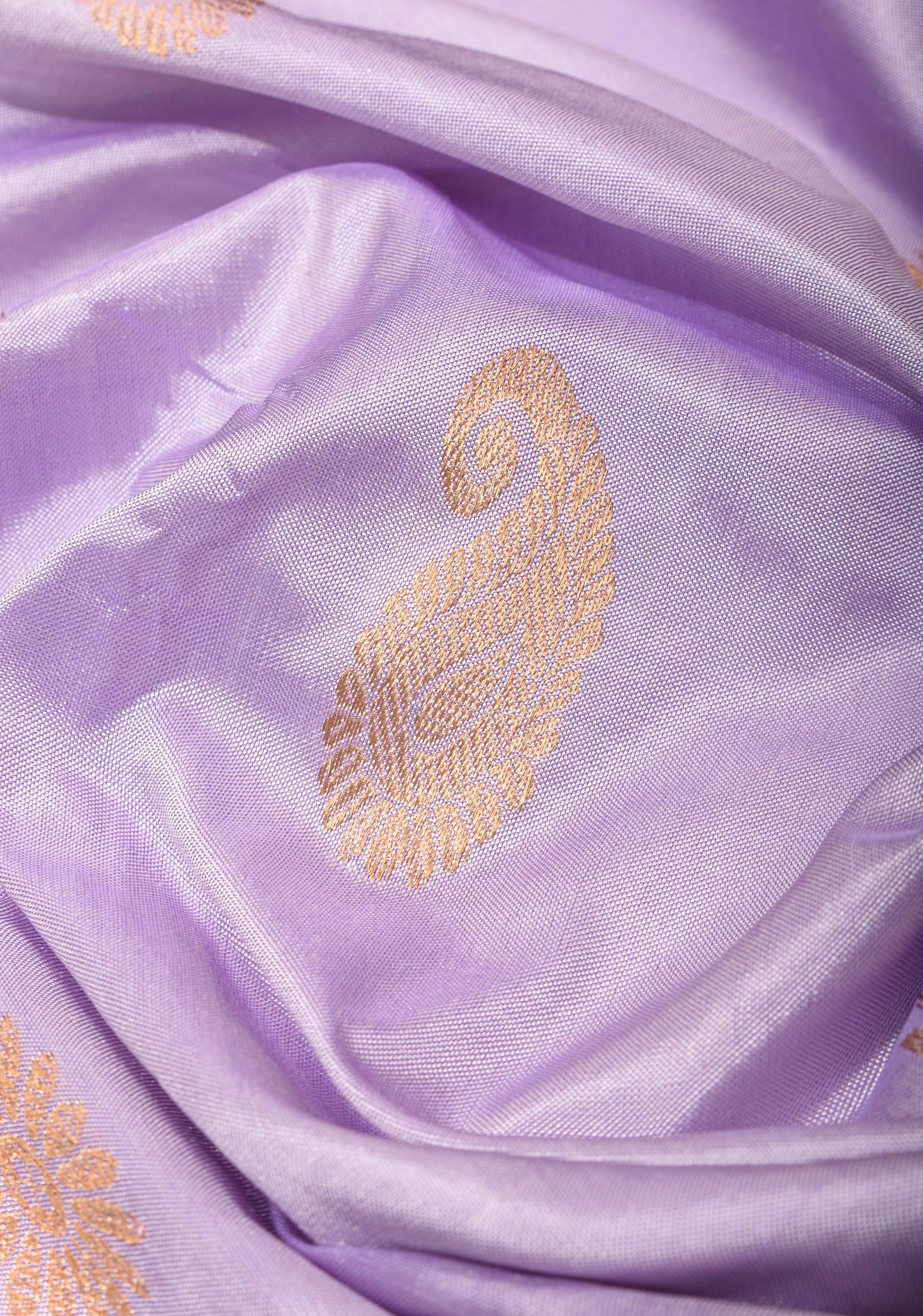 Frosty Lilac Ikkat Kanjivaram Fusion Silk Saree with Butterfly Panel and Contrast Zari Border| CERTIFIED SILK | Shobitam