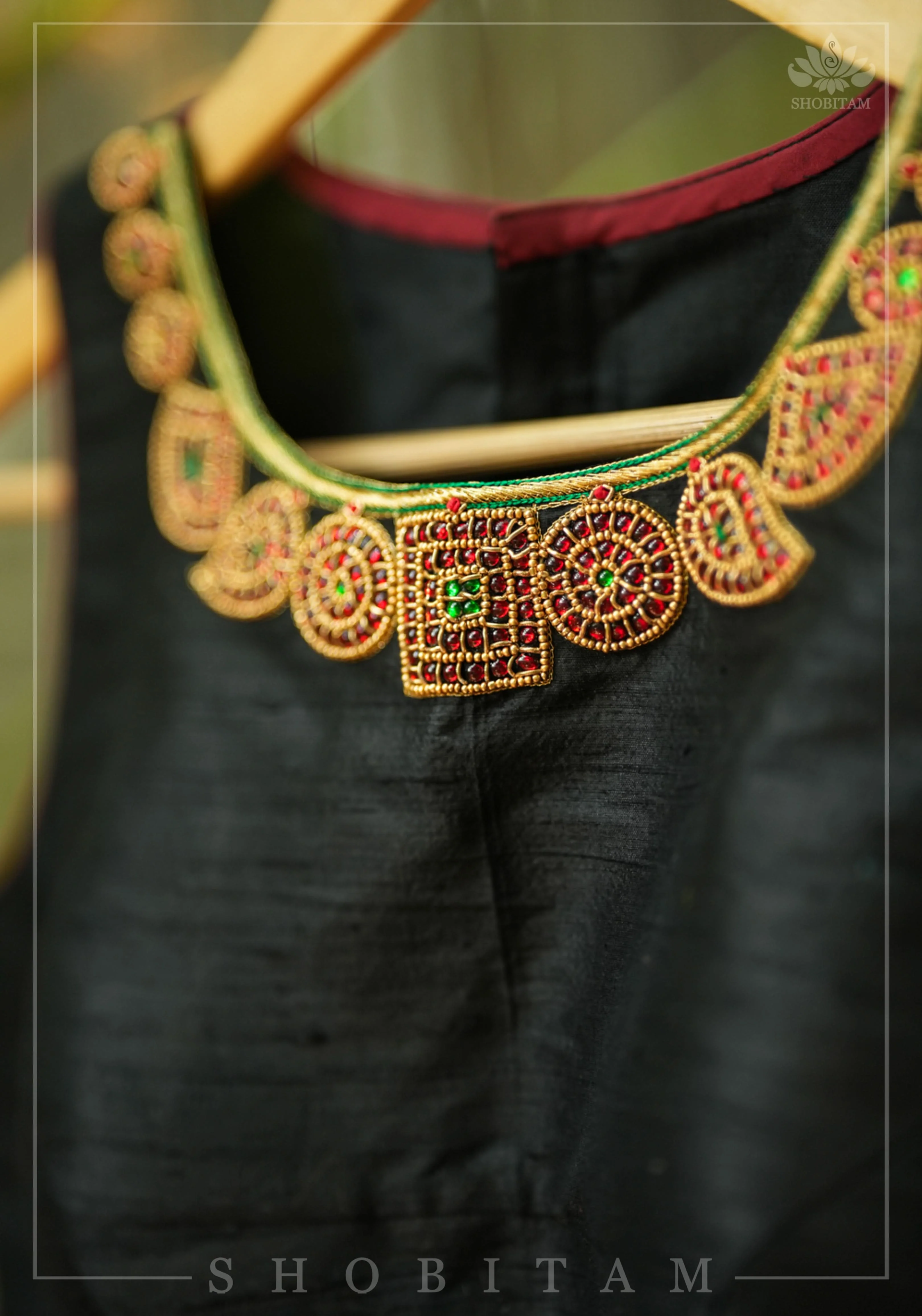 Necklace Design Jadau Ornamental Blouse in Pure Raw Silk | Shobitam
