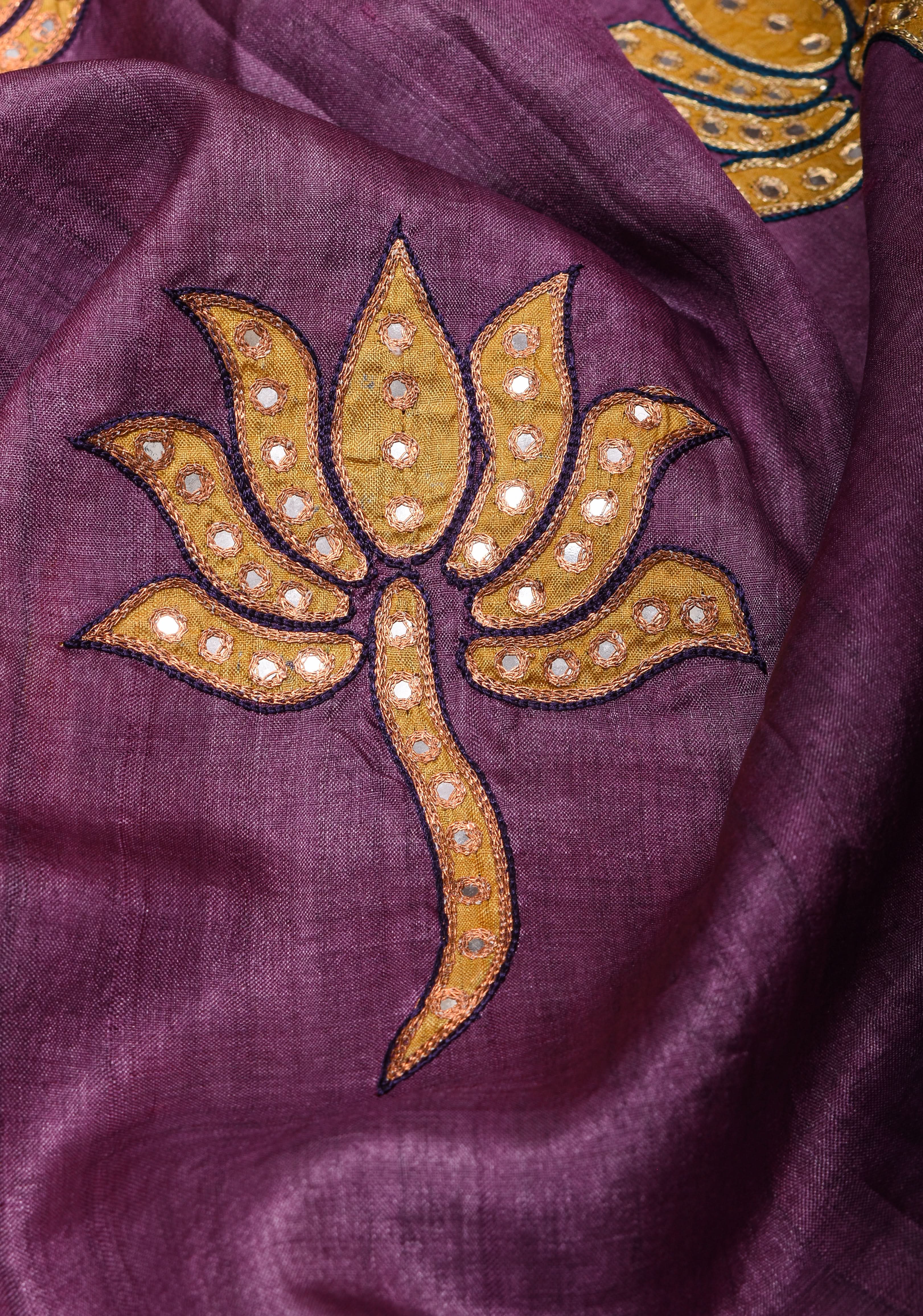 Purple Lotus Batik Gachi Tussar Silk Saree with Mirror Work | CERTIFIED SILK | Shobitam