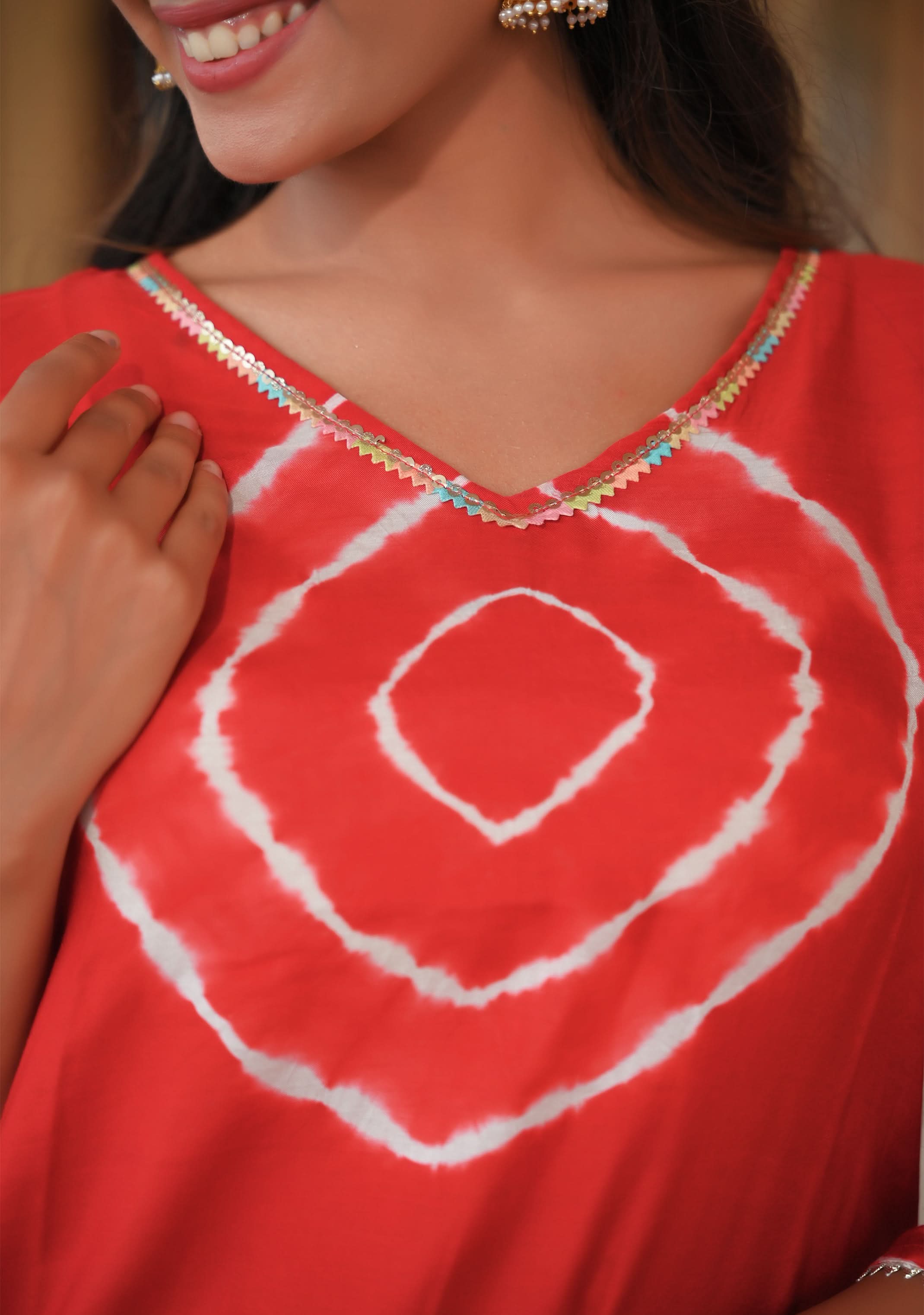 Vamika Shibori Dye 2 Pice Kurti Set in Red Muslin | Shobitam