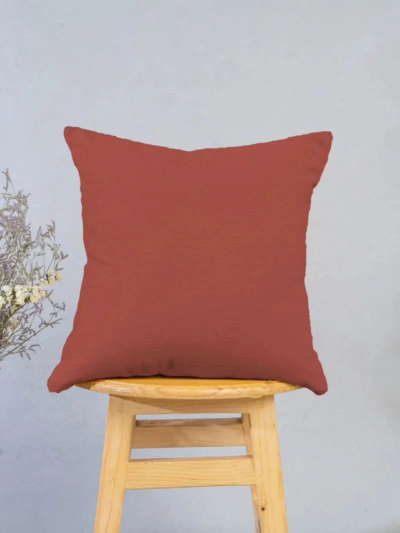 Solid Brick Red 100% cotton plain cushion cover for sofa | Shobitam