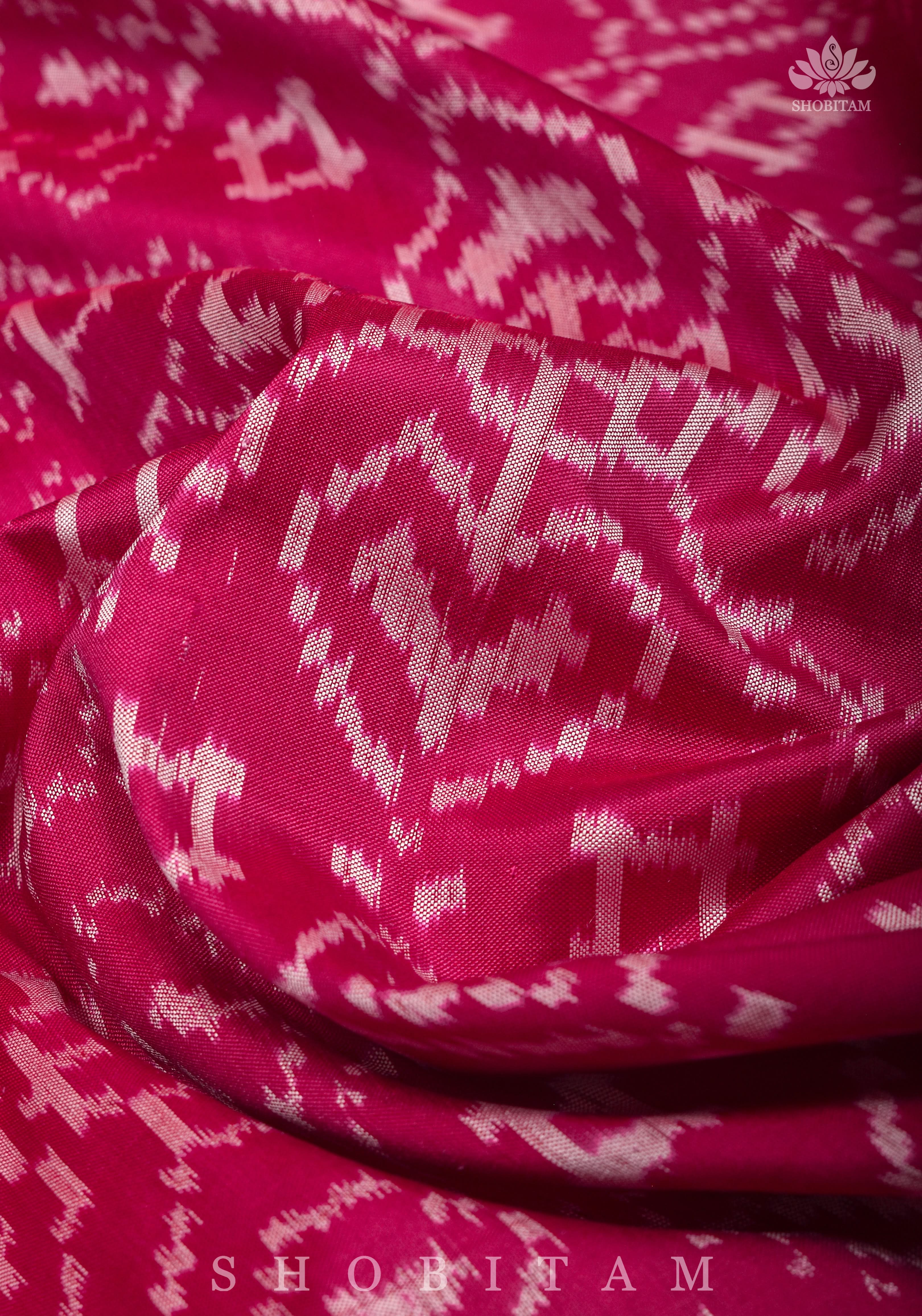 Unique Ikkat Patola Kanjivaram Fusion Silk Saree with wide zari borders and zari pallu | SILK MARK CERTIFIED | Shobitam