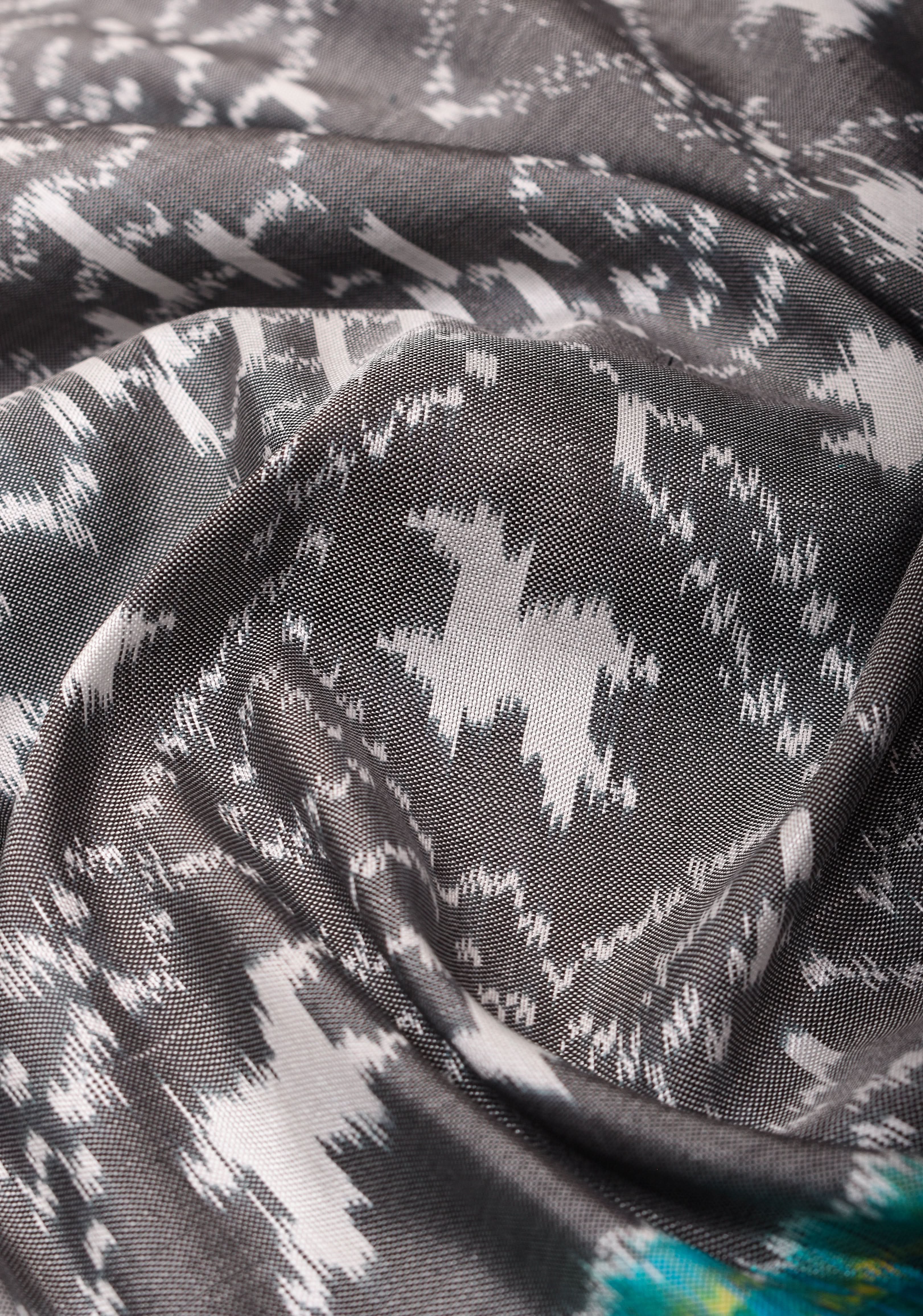 Gray Ikkat Patola Kanjivaram Fusion Silk Saree with wide zari border and contrast Ikkat Panel |SILK MARK CERTIFIED | Shobitam